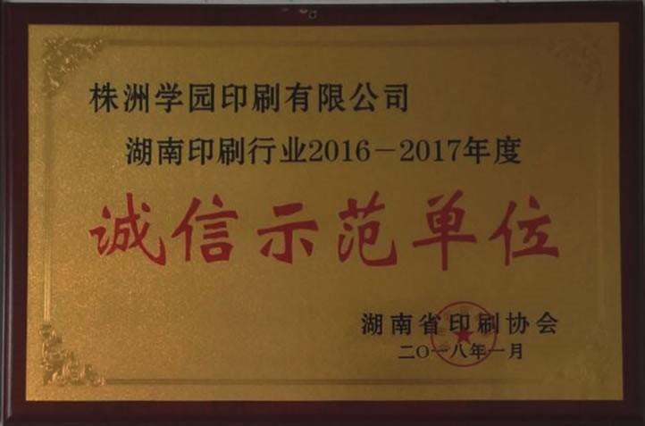 湖南印刷行业2016一2017年度诚信示范单位