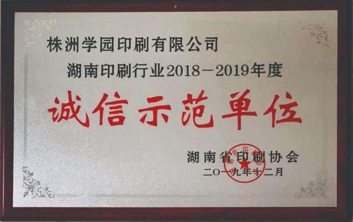 湖南印刷行业2018-2019年度诚信示范单位