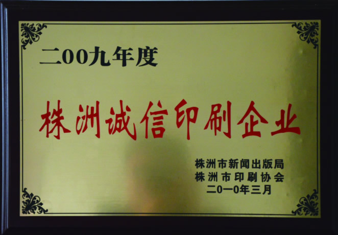 2009年度诚信印刷企业