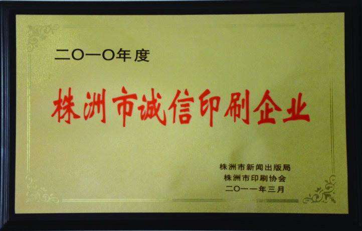 2010年度诚信印刷企业