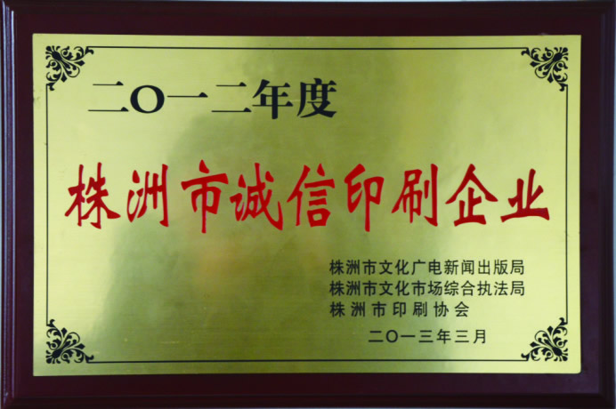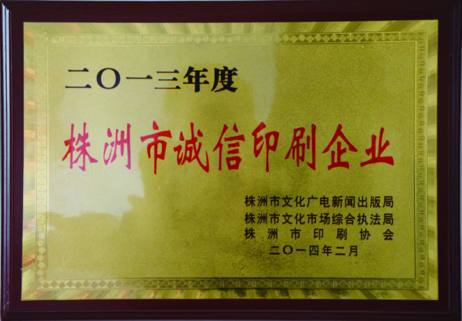 株洲市2017年度印刷行业诚信示范企业